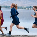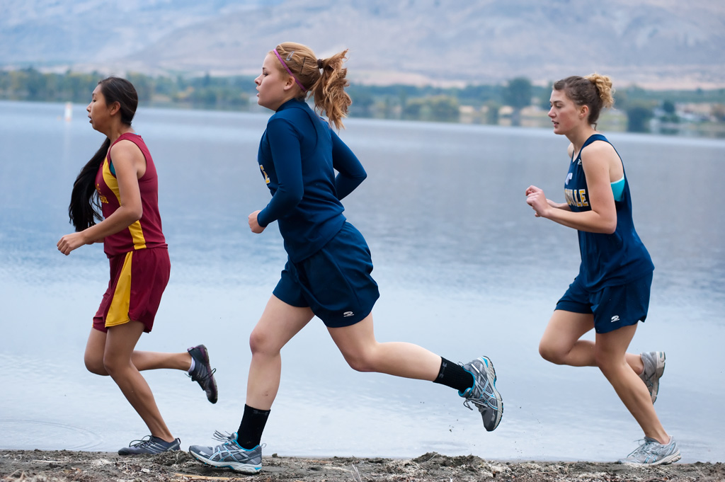 - Brent Baker/staff photo Oroville’s Callie Barker (center) and Lisa Hartvig run along the shore of Lake Osoyoos during Saturday’s Oroville Invitational.