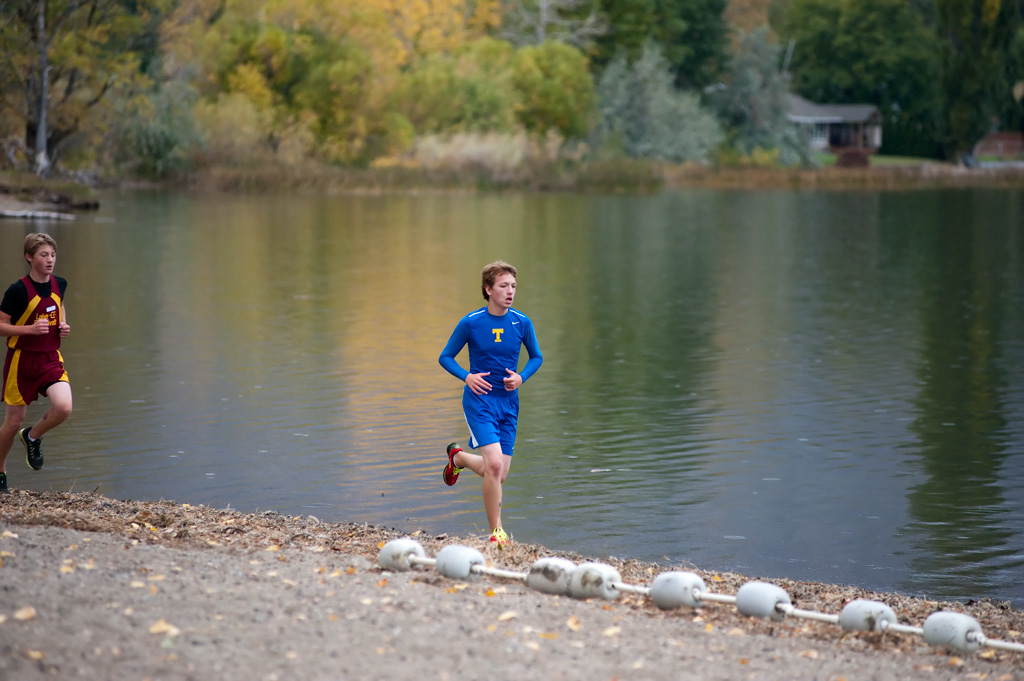 - Brent Baker/staff photo Tonasket’s Adam Halvorsen provides a bright splash of blue amongst the fall colors at the Oroville Invitational on Saturday, Oct. 13.