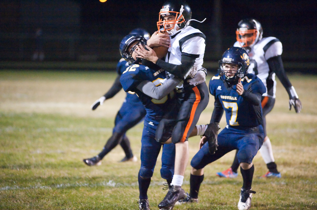 Bridgeport twice drove deep into Oroville territory in the second quarter, but coughed up a fumble on one drive and came up short on a fake field goal try with 1:30 left in the half.