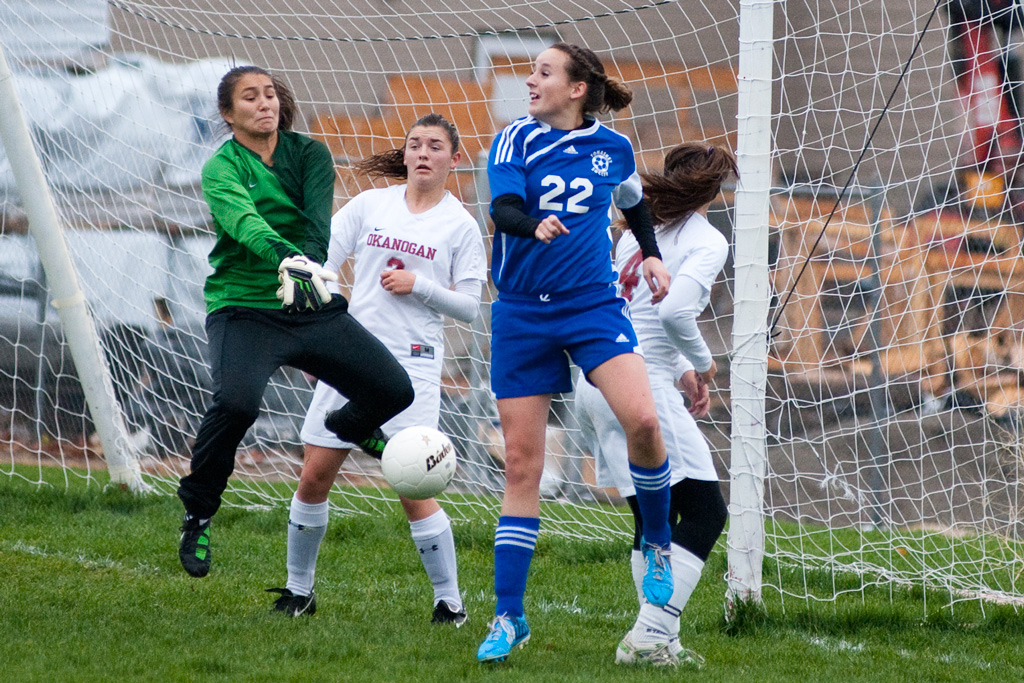 The Tigers had several scoring chances late in the first half. Kylie Dellinger nearly headed in Alicia Edwards’ corner kick that glanced off Okanogan keeper Cameron Moses and — like the goal the Bulldogs scored — bounced off several players and rolled off Moses’ back out of bounds. Okanogan cleared out the next corner without nearly the dramatics.