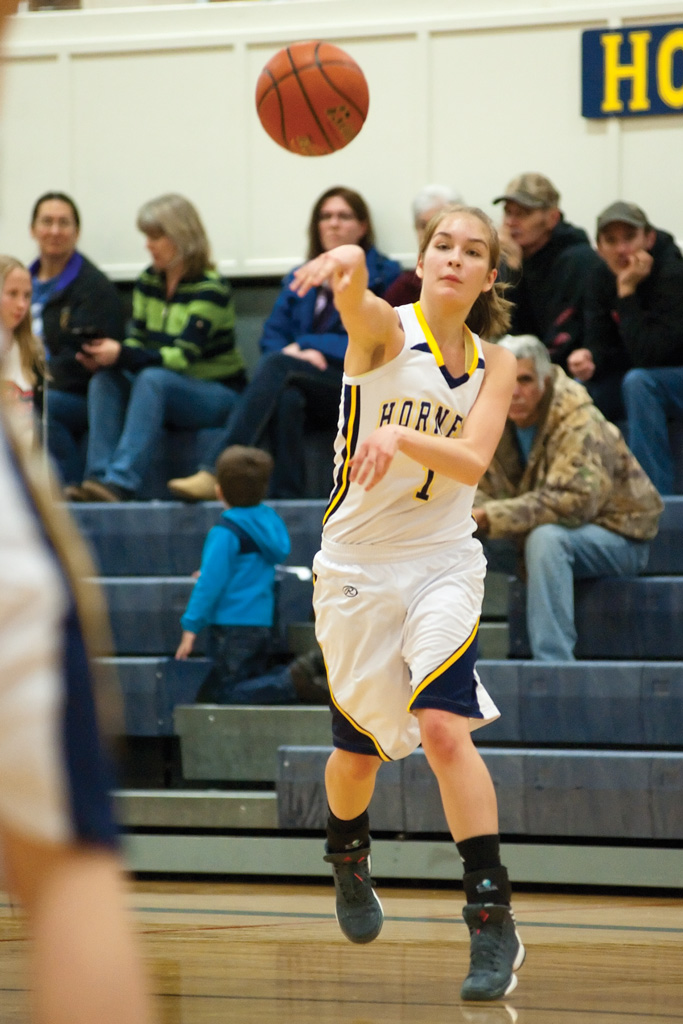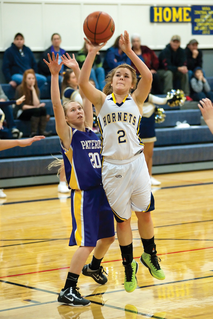 The Hornets looked like a different team in the second half, allowing just one trey and getting their offense untracked. Becky Arrigoni scored all six of her points in the third quarter as Oroville pulled to within seven on several occasions, and back-to-back baskets by Callie Barker cut the Pateros lead to 44-40 with about two minutes to play.