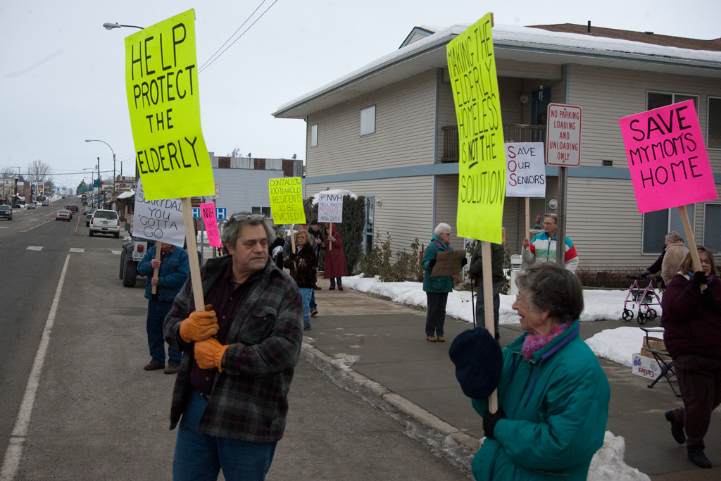 Friends, relatives and concerned citizens picketed in front of the North Valley Assisted Living facility on Friday, Jan. 18, to protest its scheduled closing at the end of March.