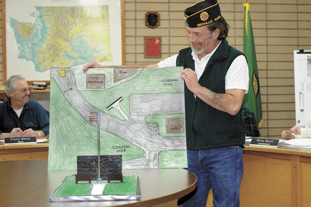 Roland Clark, with the Oroville American Legion Post, appeared before council at their Tuesday, Jan. 15 meeting to request that the current memorial be moved from its present location to a new spot in the park. He also asked that the memorial be enlarged and presented a mock-up of what he envisioned.