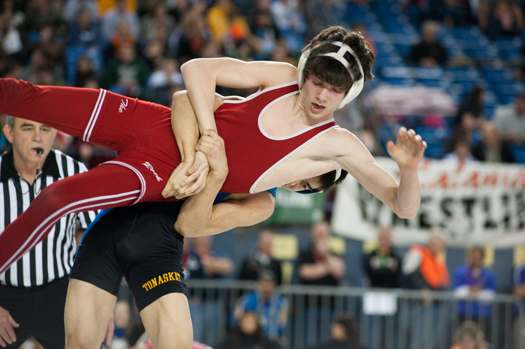 Collin Aitcheson (120) took fifth place. He advanced through the consolation bracket with an 8-1 victory over Gage Lott of Blaine, and Carson Horton of Castle Rock, 3-0. Hootie Judd, with whom Aitcheson had tangled with before, kept him out of the third place match with a 5-3 overtime win. Aitcheson claimed the fifth place medal with a 10-1 decision over Rochester’s Bobby Brien.
