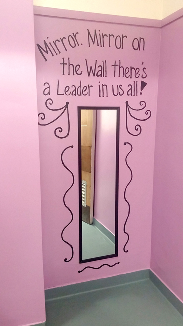 - The girls bathroom at the elementary with its ‘Mirror Mirror’ Leader in Me theme.