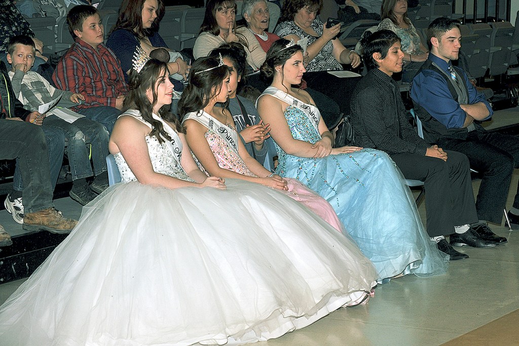 The young ladies, all juniors at Oroville High School were judged on their speeches, modeling and poise and an impromptu question. There were five judges, Diane Acord, JoAnne Peterson and Brian Martin, from Oroville and Jody Davidson from Tonasket and Brian Bowes from Okanogan. Their ballots counted for 65 percent of the selection and ballots from the community and students present at the Selection Night counted for 35 percent, said Brad Scott, who served as emcee. The ballot officials were Peggy Shaw, Katelynn Peterson, Erin McKinney, Sonia Bobadilla and Serena Finley.