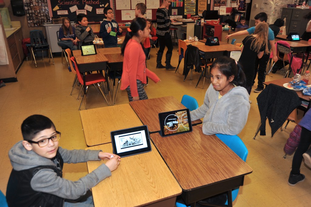 Throughout the day the hallways were a hive of activity with parents and friends of the students going between classrooms to look at the various projects. In one classroom the students had several stations where they showed various historical presentations on iPads about the early day explorers. In another, students showed workbooks outlining their progress in identifying words and numbers and how far they could count.