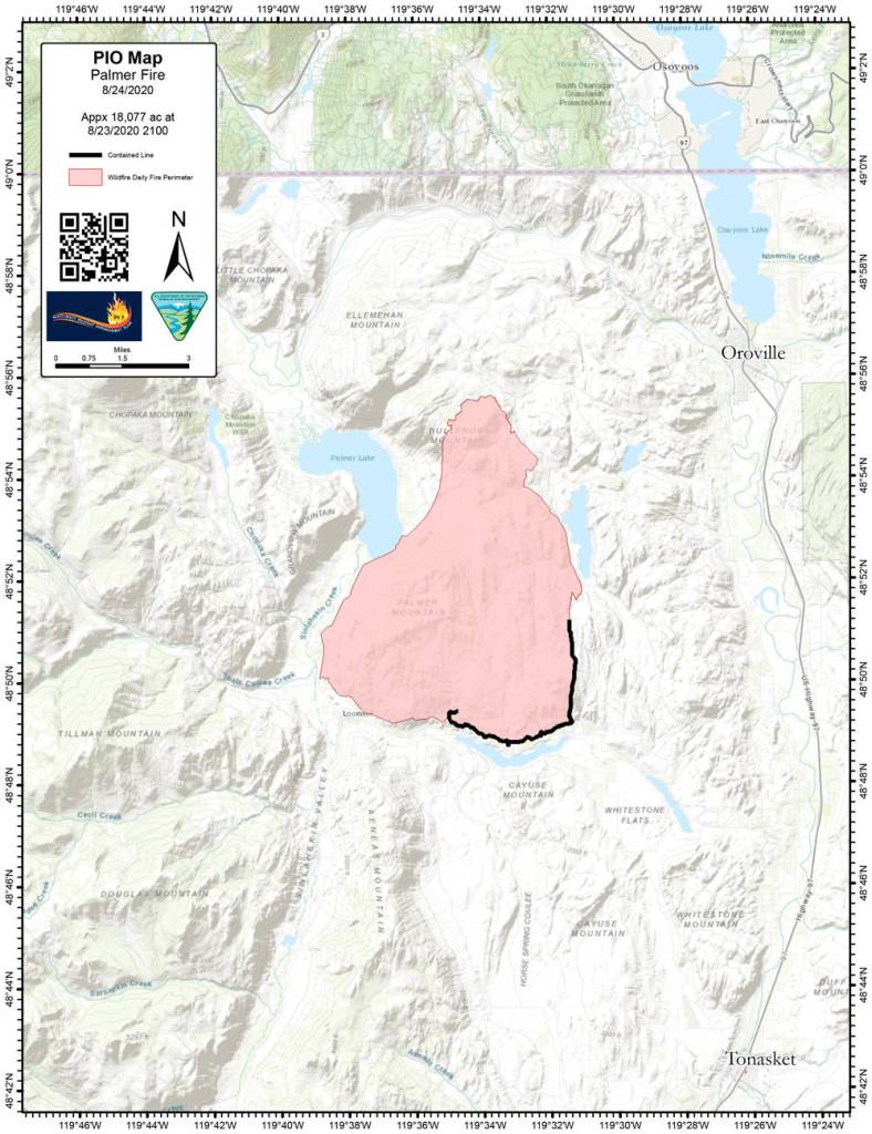OROVILLE – Firefighters made significant progress yesterday fighting the Palmer Fire and containment of the 18,077 acre fire is now at 27 percent, according to the Monday, Aug. 24 update from Northwest Incident Management Team 6.