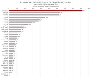Okanogan County has, by far, the highest incidence rate of COVID-19 cases in Washington State