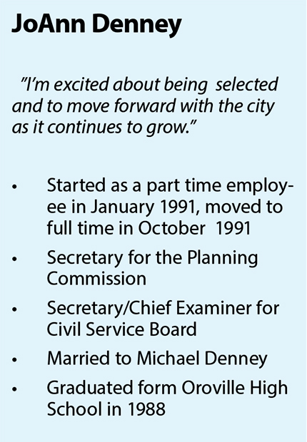OROVILLE – Councilman Walt Hart, serving as mayor pro tem, announced that JoAnn Denney will be Oroville’s new city clerk/treasurer following the retirement of Kathy Jones at the end of October.