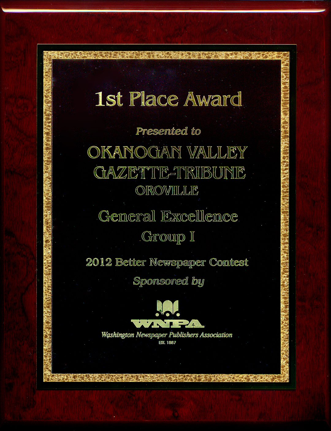 YAKIMA – The Okanogan Valley Gazette-Tribune took top honors at last weekend’s Washington Newspaper Publishers Association convention with a first place in the prestigious General Excellence category for circulation group 1.
