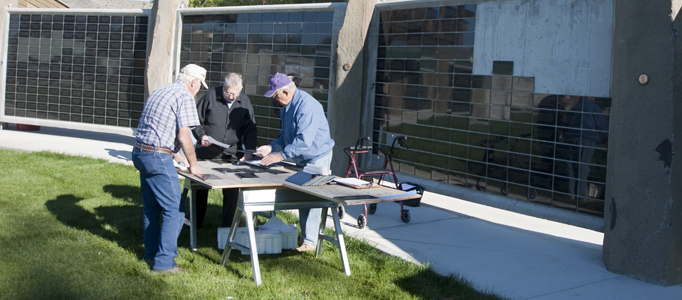George Frank, Hugh Maycumber, DVM and Paul Diener prepare plaques for installation at the U.S. Armed Forces Legacy Project on the south end of Tonasket on Thursday, Sept. 13.