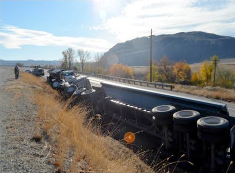 Sanche’s car, while damaged, was drivable from the scene. The tractor-trailer was towed by Randy’s towing after the calcium carbonate quarried by Columbia River Carbonates, near Wauconda, was transferred to another truck.